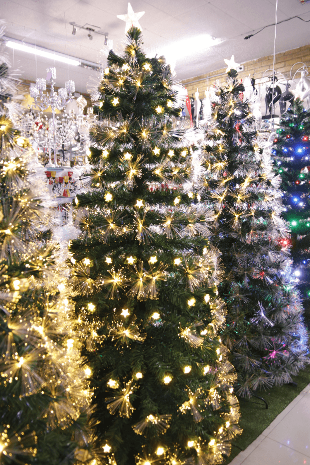 Árbol decorativo de 1,80 metros con iluminación LED y fibra óptica en luz cálida. Su efecto brillante y uniforme crea un ambiente acogedor y elegante, ideal para realzar cualquier espacio durante la temporada navideña.