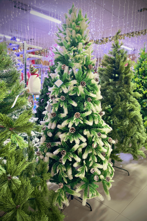 Árbol de Navidad Verde Oscuro con Puntas Nevadas y Ramas Frondosas Rango de precios: desde $270.000 hasta $390.000 IVA Incluido