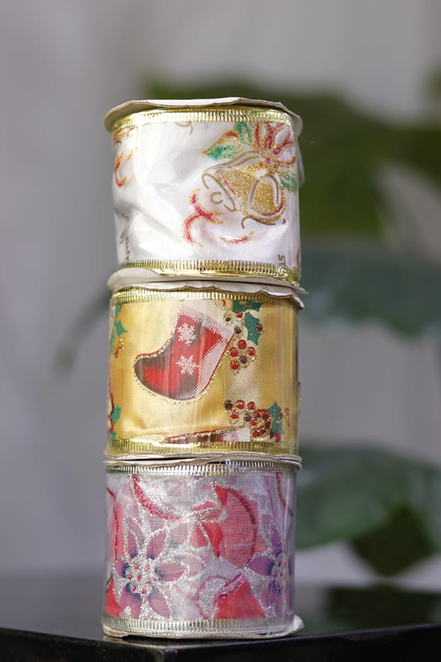Lleva el espíritu navideño a tus decoraciones con esta elegante cinta de raso.