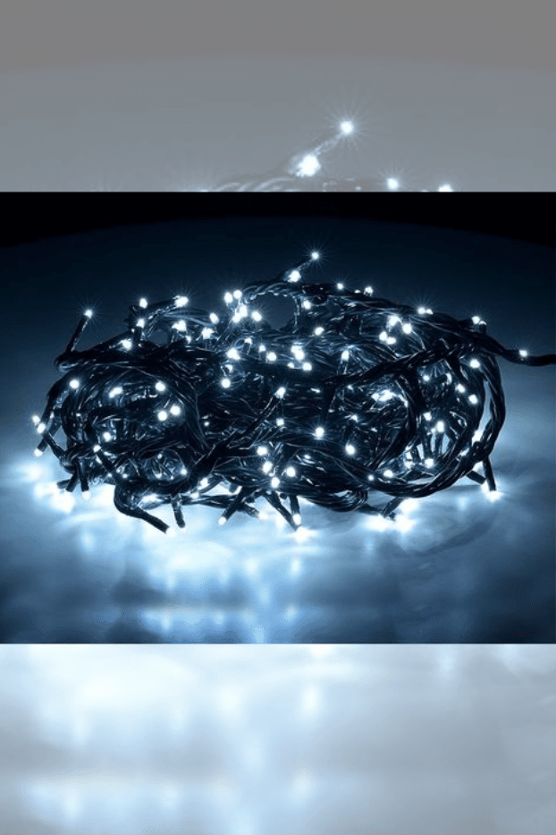 Instalación LED de alto alcance con 400 luces blancas distribuidas en 32 metros. Su cable verde se mimetiza perfectamente en árboles o espacios naturales, ideal para decoración exterior o eventos. Cuenta con sistema de 5 vías para conexión continua. Presentación en caja.